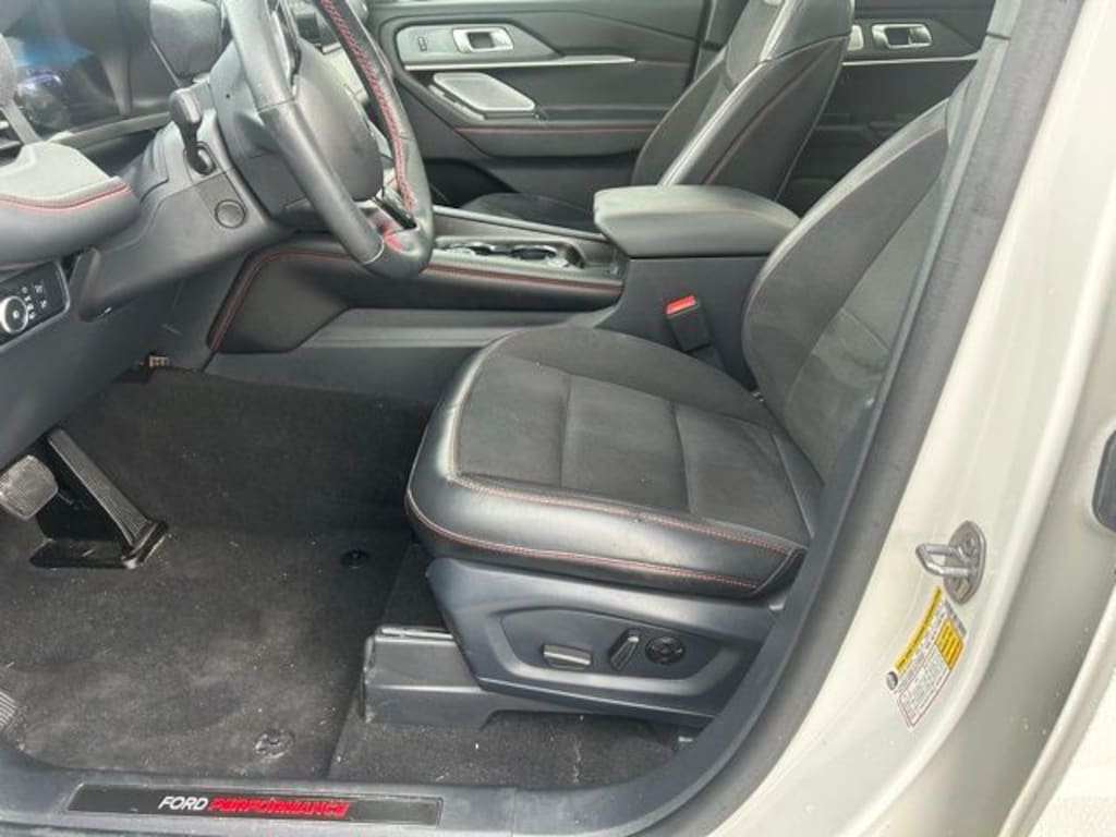 Step inside and be captivated by the Explorer ST's premium cabin, featuring luxurious Miko Sport Captain's Chairs and a state-of-the-art B&O Sound System that will immerse you in your favorite music. The intuitive Navigation System and seamless Apple CarPlay/Android Auto integration ensure you stay connected and informed on every journey.