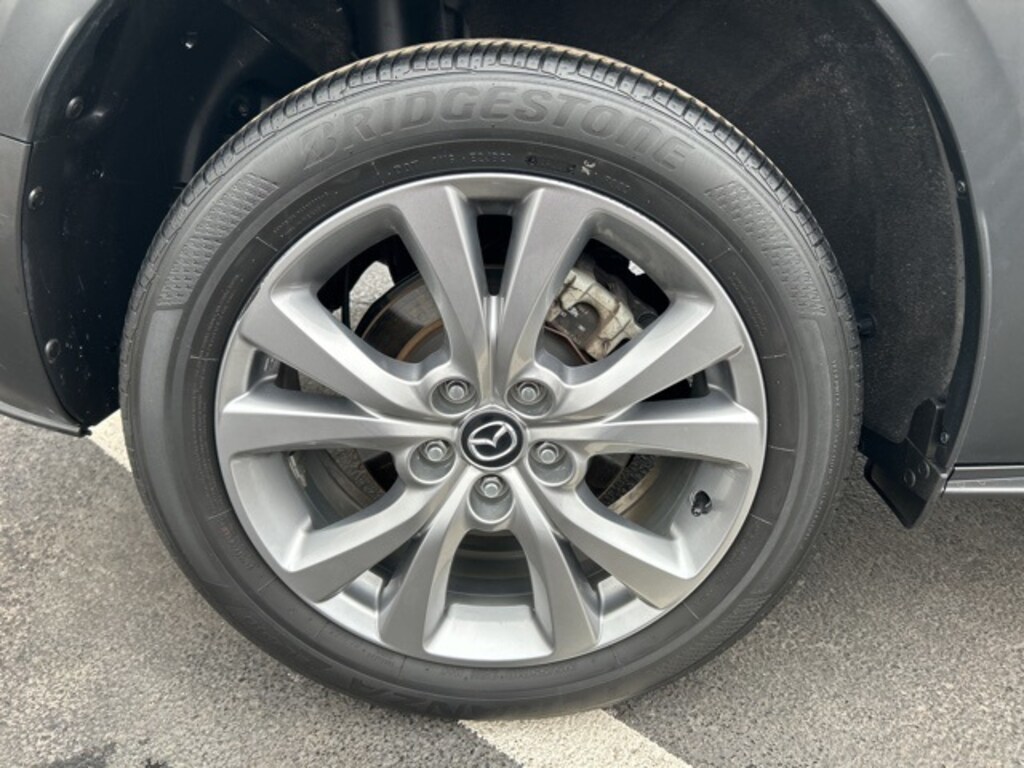 2.5 S Select Package AWD 6-Speed Automatic 4-Wheel Disc Brakes, 4.095 Axle Ratio, 8 Speakers, ABS brakes, Air Conditioning, Alloy wheels, AM/FM radio, AppLink/Apple CarPlay and Android Auto, Auto High-beam Headlights, Automatic temperature control, Brake assist, Bumpers: body-color, Compass, Delay-off headlights, Driver door bin, Driver vanity mirror, Dual front impact airbags, Dual front side impact airbags, Electronic Stability Control, Emergency communication system: Mazda Connected Services (3-year complimentary trial included), Exterior Parking Camera Rear, Front anti-roll bar, Front Bucket Seats, Front Center Armrest, Front dual zone A/C, Front reading lights, Front wheel independent suspension, Fully automatic headlights, Illuminated entry, Knee airbag, Leather Shift Knob, Leather steering wheel, Leatherette Seat Trim, Low tire pressure warning, MAZDA CONNECT Infotainment System, Occupant sensing airbag, Outside temperature display, Overhead airbag, Panic alarm, Passenger door bin, Passenger vanity mirror, Power door mirrors, Power steering, Power windows, Radio data system, Radio: AM/FM/HD Audio System, Rain sensing wipers, Rear seat center armrest, Rear side impact airbag, Rear window defroster, Rear window wiper, Remote keyless entry, Snowflake White Pearl Mica Paint, Speed control, Speed-sensing steering, Split folding rear seat, Spoiler, Steering wheel mounted audio controls, Tachometer, Telescoping steering wheel, Tilt steering wheel, Traction control, Trip computer, Turn signal indicator mirrors, Variably intermittent wipers, Wheels: 18" x 7J Aluminum Alloy.